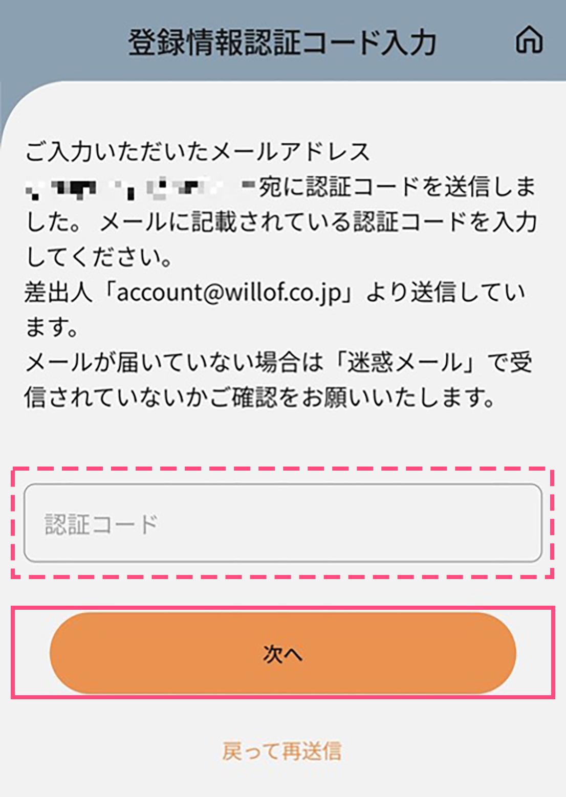 3. IDとして使用するメールアドレスを入力し、認証コードを送信
